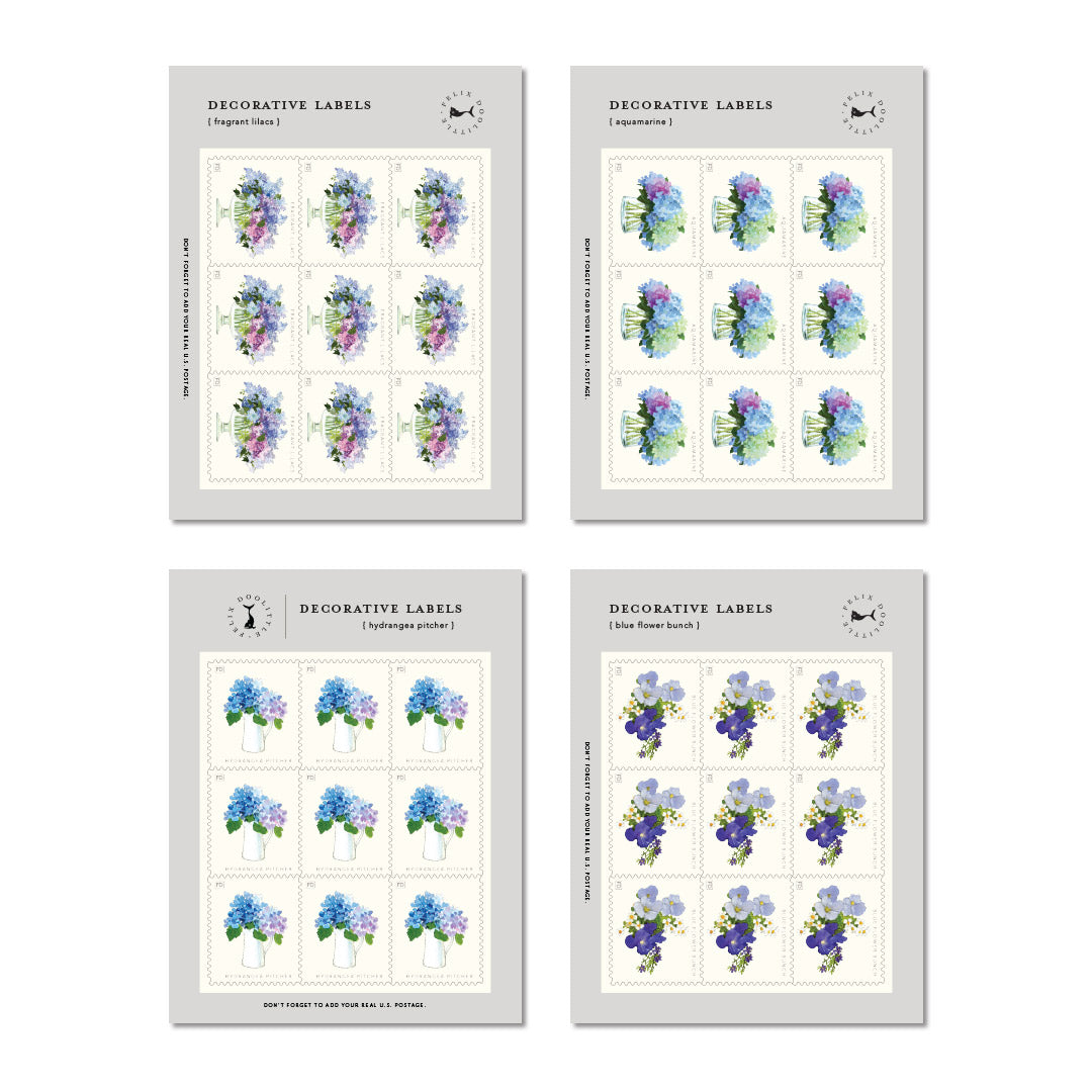 Stamps are so much fun that we decided to create our own! Decorative Labels add a playfulness to sending letters, cards, parcels, and gifts whether they're sent through the mail or hand-delivered. Inside the envelope are four sheets - each with nine crack and peel labels - to use to your heart's content. They are a scrapbooker’s delight too.