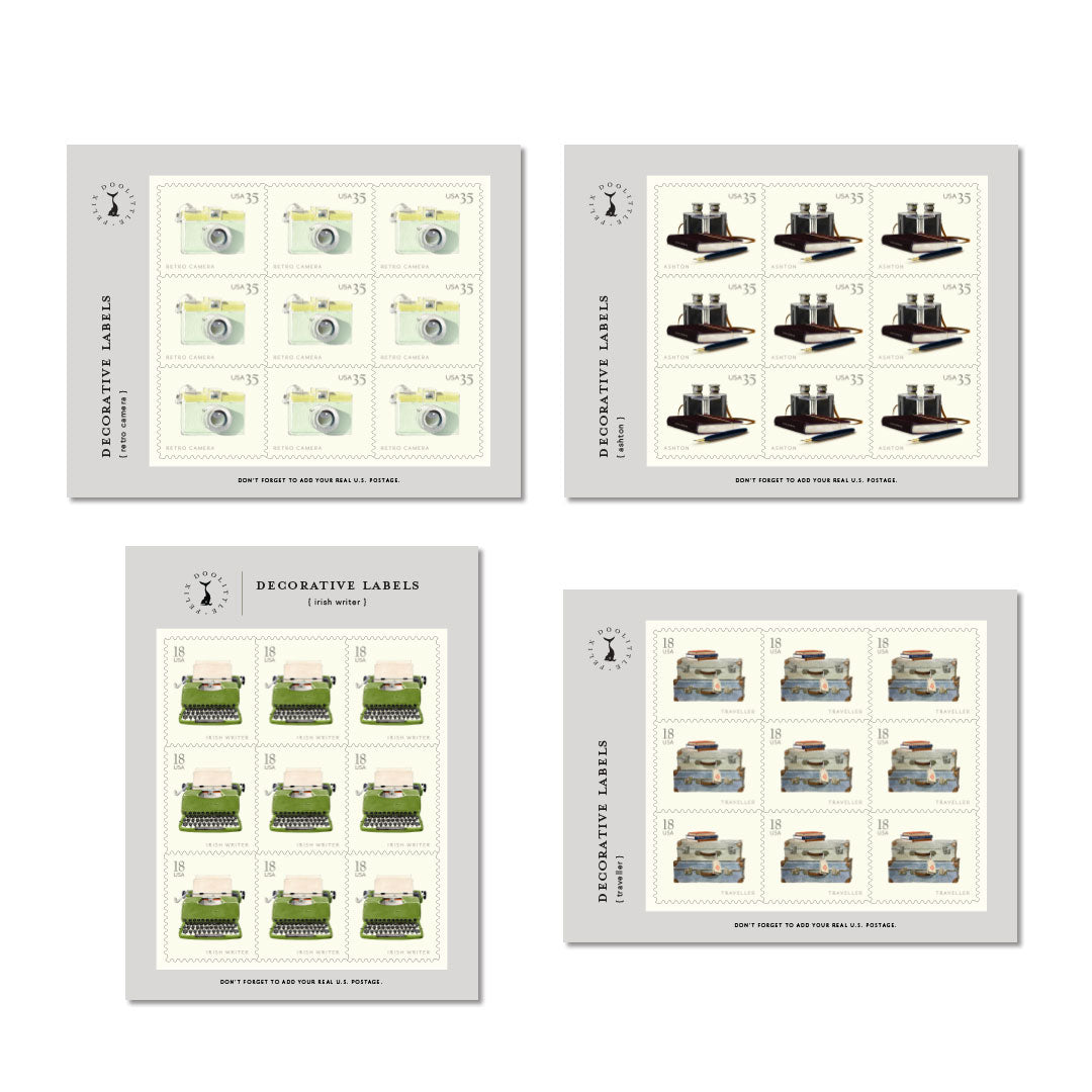 Stamps are so much fun that we decided to create our own! Decorative Labels add a playfulness to sending letters, cards, parcels, and gifts whether they're sent through the mail or hand-delivered. Inside the envelope are four sheets - each with nine crack and peel labels - to use to your heart's content. They are a scrapbooker’s delight too.