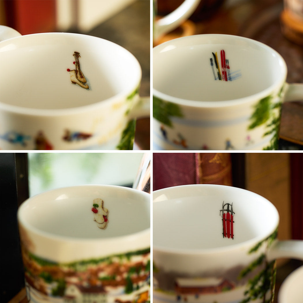 Celebrate the season with this gift set created in collaboration with Caskata. Four of Felix’s panoramic winter fun illustrations wrap around their oversized and best selling mugs adding story to your hot chocolate, tea and coffee enjoyment. The miniature skates, skis, mittens, or sled inside each mug is an added delight.