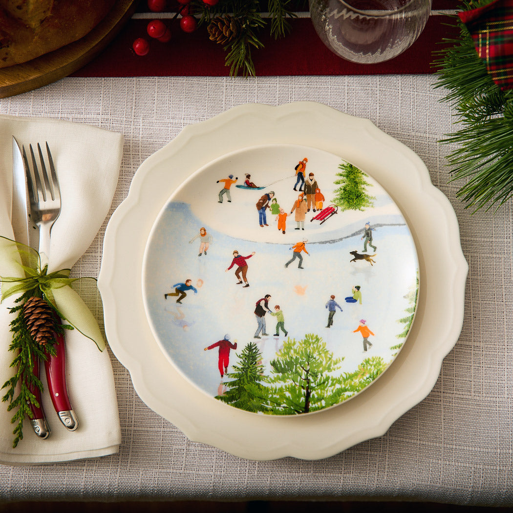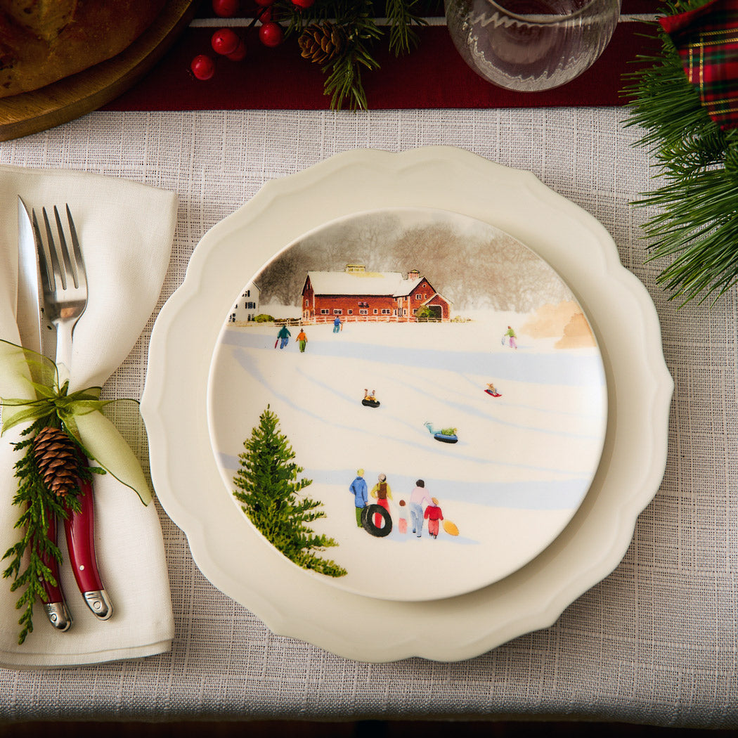 • Celebrate the season with this gift set created in collaboration with Caskata, renowned creator of exquisite high-fired porcelain tableware. Four of Felix’s winter fun illustrations are featured on Caskata’s best selling mid-sized plates that are perfect for light dinners, lunches, snack, and desserts! Enjoy sledders and tubers sliding down a hill, kids making a snowman, cross-country skiers making their way, and a ice skaters twirling, racing, and having a wonderful time.