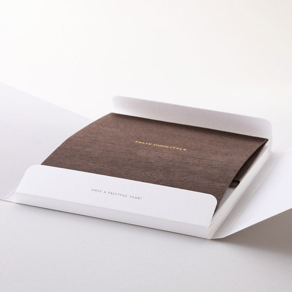 Our redesigned Desk Calendar features larger illustrations and a premium wood-embossed paper stand. It's simple and fun to fold. Just peel the tape liner, press, and it's ready to display. Folding instructions are included.