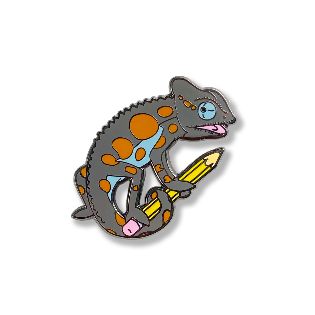 Did you know that a chameleon can move both of its eyes individually gathering different viewpoints about its environment? They're also the masters of camouflage. It's a small leap to imagine both of those things happening continuously with our colorful Camouflage Artist holding a yellow pencil with its pink eraser.