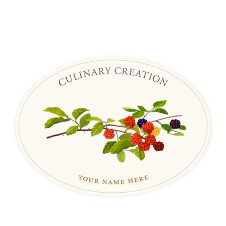 • These kitchen labels offer a nostalgic oval shape, Felix's vibrant watercolor illustrations, and personalization. They're the perfect finishing touch when gifting home-cooked creations.