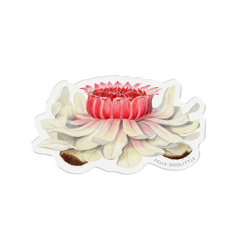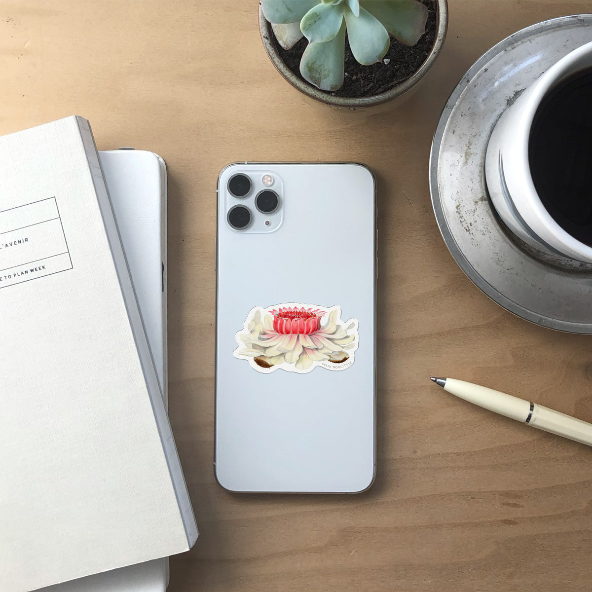 A wonder of the botanical world, with giant floating pads and luminous blooms. Made from high-quality 3M vinyl, these stickers are waterproof, weatherproof, scratch-resistant, dishwasher safe, and best of all, repositionable. Small enough to fit on your phone case, the stickers can be applied to computers and tablet covers, reusable water bottles, notebooks, mugs, really, wherever you think needs a smile.